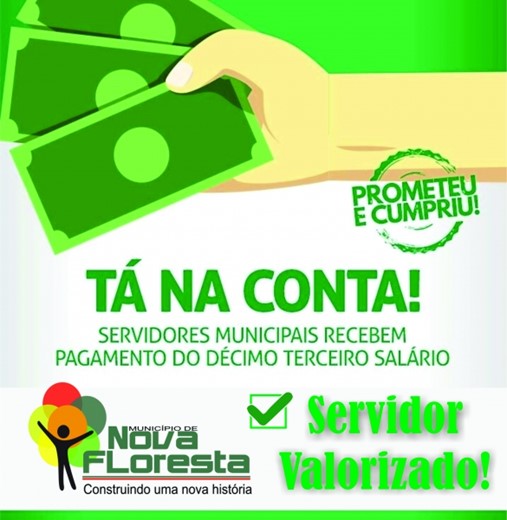servidores municipais que o pagamento do 13º já está disponível em conta. Esse é