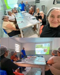 Durante a capacitação, as participantes estão recebendo orientações sobre higiene pessoal, conservação e armazenamento adequado dos alimentos, além de cuidados necessários durante o preparo e a distribuição das refeições.