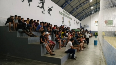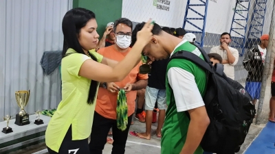 O prefeito Jarson, a secretária Rayane Suelen e o coordenador de esportes Marcelo Ramos estiveram presentes no evento, além dos espectadores, que lotaram o ginásio para prestigiar o jogo.