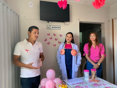 A campanha ‘Outubro Rosa’ tem como principal objetivo alertar as mulheres e a sociedade sobre a importância da prevenção e do diagnóstico precoce do câncer de mama e o câncer do colo do útero. Para isso, os PSF3, PSF4 e PSF5 da zona urbana, promoveram simultaneamente na manhã dessa quarta-feira (19), encontros, palestras, rodas de conversa, dinâmicas de autoexame e sorteios. Além das mulheres, e os profissionais de saúde, esteve presente o secretário de saúde João Paulo, juntamente com secretária de políticas públicas das mulheres, crianças e adolescentes Joana Darc.