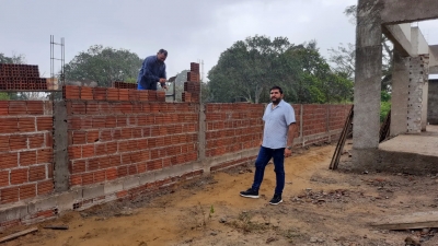 Na tarde desta quinta-feira (04), o prefeito Jarson do Pastor, juntamente do engenheiro da Prefeitura Daniel Lira e do coordenador de obras Erones Rodrigues, acompanhou as obras de construção da nova creche, no bairro Pau Brasil.
