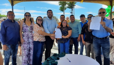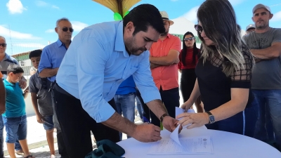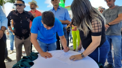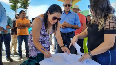 O prefeito Jarson Santos realizou, na manhã deste sábado (03), a assinatura de Ordem de Serviço para construção de um auditório anexo à Escola Delane Santos. O evento contou também com a vice-prefeita Eliene Maria, representantes do poder legislativo, secretários municipais, servidores da educação e populares.