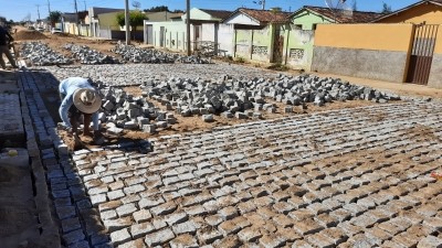visitando os serviços de pavimentação em paralelepípedo de trecho da Rua José
