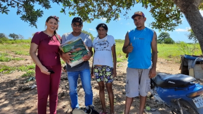 Estiveram presentes na entrega o prefeito Jarson Santos, o secretário de Agricultura Iran Santos e o secretária de Assistência Social Isabel Alves. A distribuição dos alimentos visa beneficiar principalmente a comunidade rural com segurança alimentar e qualidade de vida.