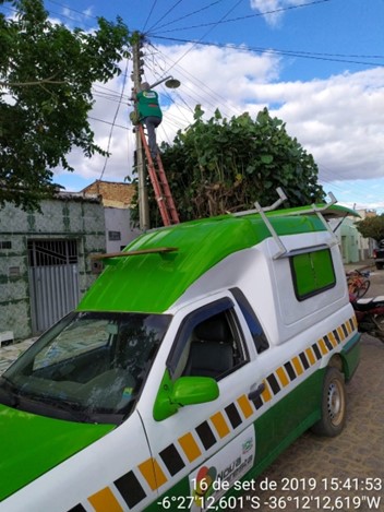 substituição de lâmpadas e na instalação dos braços de luminárias em alguns