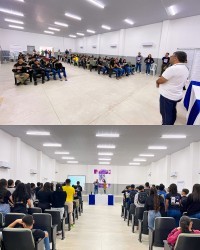 Na manhã desta sexta-feira, 15 de agosto, os estudantes das turmas do 9º ano da rede municipal de ensino participaram de um encontro especial com o palestrante Júnior Freitas, que abordou o tema “Desenvolver novas oportunidades de aprendizagem, ancoradas em metodologias inovadoras e protagonismo estudantil”.