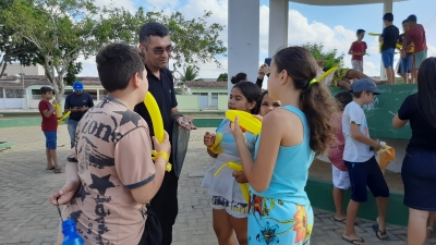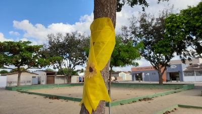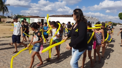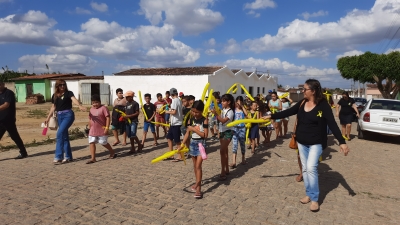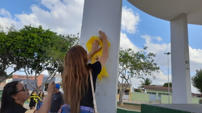 Os usuários, acompanhados da secretária Joana Darc e dos monitres do serviço, em caminhada, visitaram a praça do Coreto, onde decoraram o ambiente com a temática da campanha.