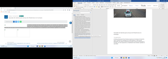 Secretaria de Transportes, Obras e Urbanismo, fez a aquisição de 20 (vinte)
