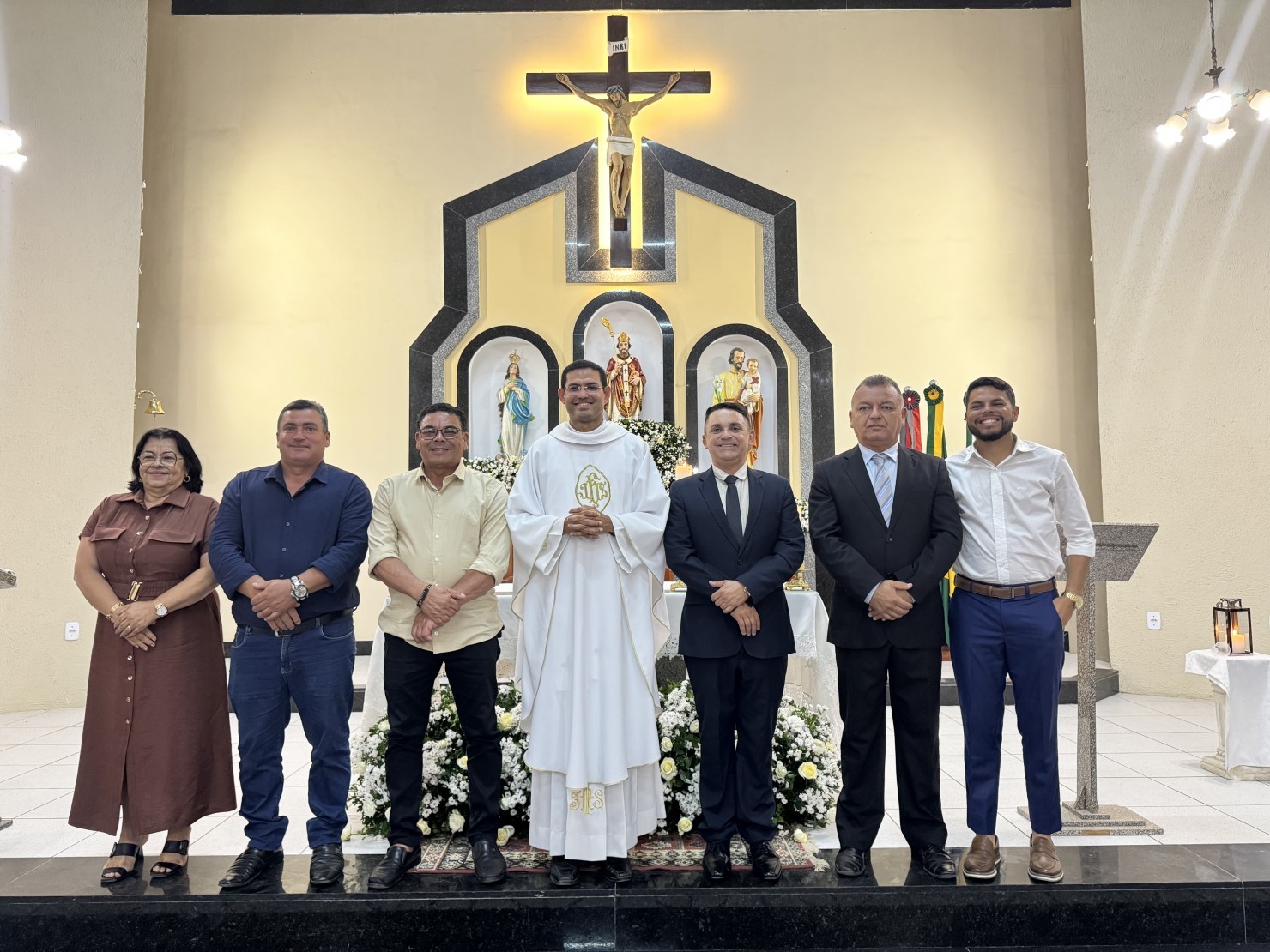 A celebração foi presidida pelo Padre Tadeu Laurentino, administrador paroquial, e contou com a presença de autoridades municipais, fiéis e representantes da comunidade.