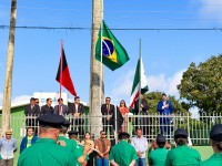 A programação teve início às 5h, com a Alvorada, anunciando a data especial para todo o município. Logo em seguida, às 7h, aconteceu o Hasteamento das Bandeiras, em frente à sede da Prefeitura Municipal, em um ato cívico que reuniu autoridades locais, servidores públicos, estudantes e a população em geral.