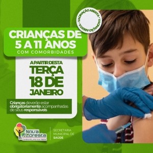terça-feira (18), a vacinação contra a covid-19 em crianças de 5 a 11 anos de