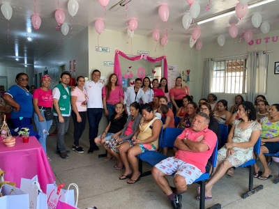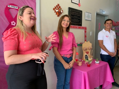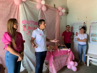 A campanha ‘Outubro Rosa’ tem como principal objetivo alertar as mulheres e a sociedade sobre a importância da prevenção e do diagnóstico precoce do câncer de mama e o câncer do colo do útero. Para isso, os PSF3, PSF4 e PSF5 da zona urbana, promoveram simultaneamente na manhã dessa quarta-feira (19), encontros, palestras, rodas de conversa, dinâmicas de autoexame e sorteios. Além das mulheres, e os profissionais de saúde, esteve presente o secretário de saúde João Paulo, juntamente com secretária de políticas públicas das mulheres, crianças e adolescentes Joana Darc.