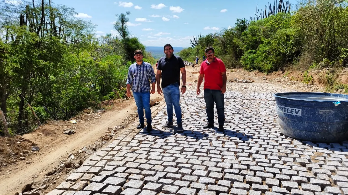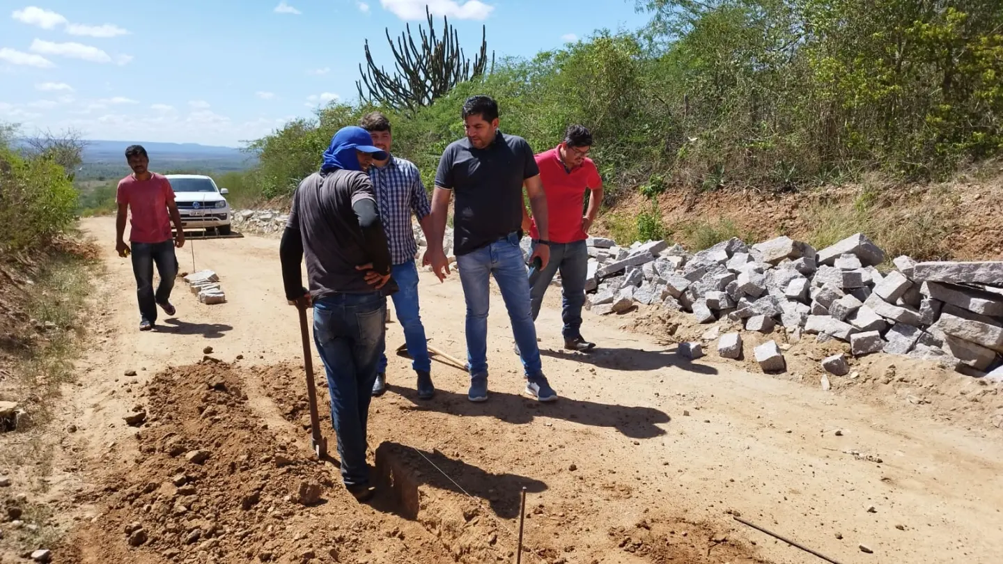 Na manhã desta quarta-feira (01), o prefeito Jarson do Pastor, juntamente com o engenheiro Daniel Lira e o secretário de Agricultura e Abastecimento José Faustino, acompanhou o andamento das obras de pavimentação em paralelepípedo de trecho da ladeira da Pedra D'água, na zona rural do município.