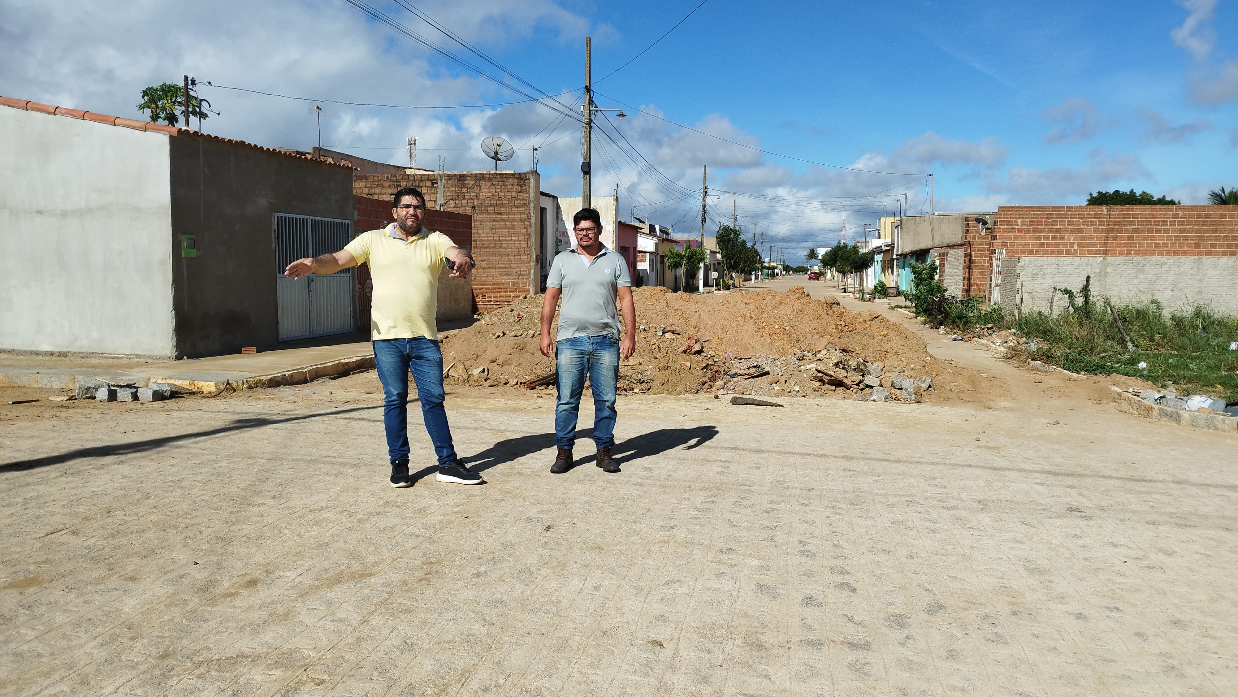 Na manhã desta sexta-feira (13), o prefeito Jarson Santos, juntamente do engenheiro da Prefeitura Daniel Lira, acompanhou o andamento das obras de pavimentação em paralelepípedos da rua Antônio Maximínio.