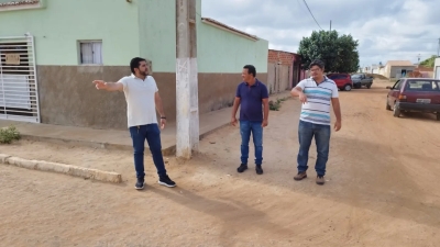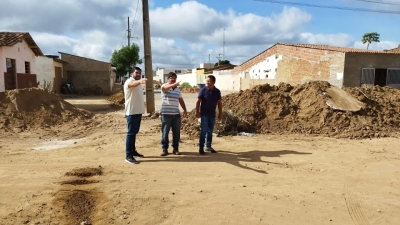 Na manhã da última segunda-feira (14) o prefeito Jarson do Pastor, juntamente do coordenador de obras Erones Rodrigues e do engenheiro Daniel Lira, acompanhou o andamento da execução da pavimentação em paralelepípedo da rua Antônio Maximino, no bairro Maria Faustino.