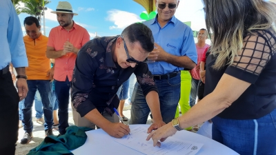 O prefeito Jarson Santos realizou, na manhã deste sábado (03), a assinatura de Ordem de Serviço para construção de um auditório anexo à Escola Delane Santos. O evento contou também com a vice-prefeita Eliene Maria, representantes do poder legislativo, secretários municipais, servidores da educação e populares.