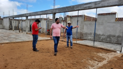 Na manhã desta segunda-feira (30), o prefeito Jarson, juntamente do engenheiro da Prefeitura Daniel Lira, visitou as obras da creche da rua Manoel Paulino da Silva, e acompanhou a terceira medição do serviço. O mestre de obras responsável pela execução da mesma também estava presente.