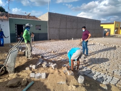 o prefeito Jarson Santos vistoriou as obras de pavimentação em paralelepípedo