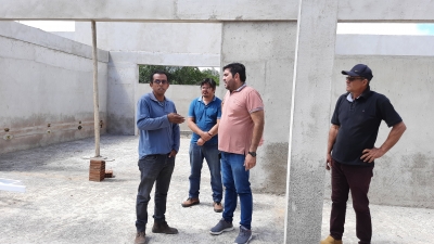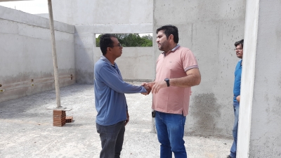 Na manhã desta segunda-feira (05), o prefeito Jarson, juntamente do engenheiro da Daniel Lira, realizou visita técnica para acompanhar o andamento das obras da nova Creche do bairro Pau Brasil e realizar mais uma medição do serviço. O representante da construtora responsável também esteve presente.