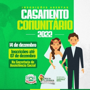 Moradores de Nova Floresta que desejam regularizar a união civil poderão realizar a inscrição para o CASAMENTO COMUNITÁRIO.