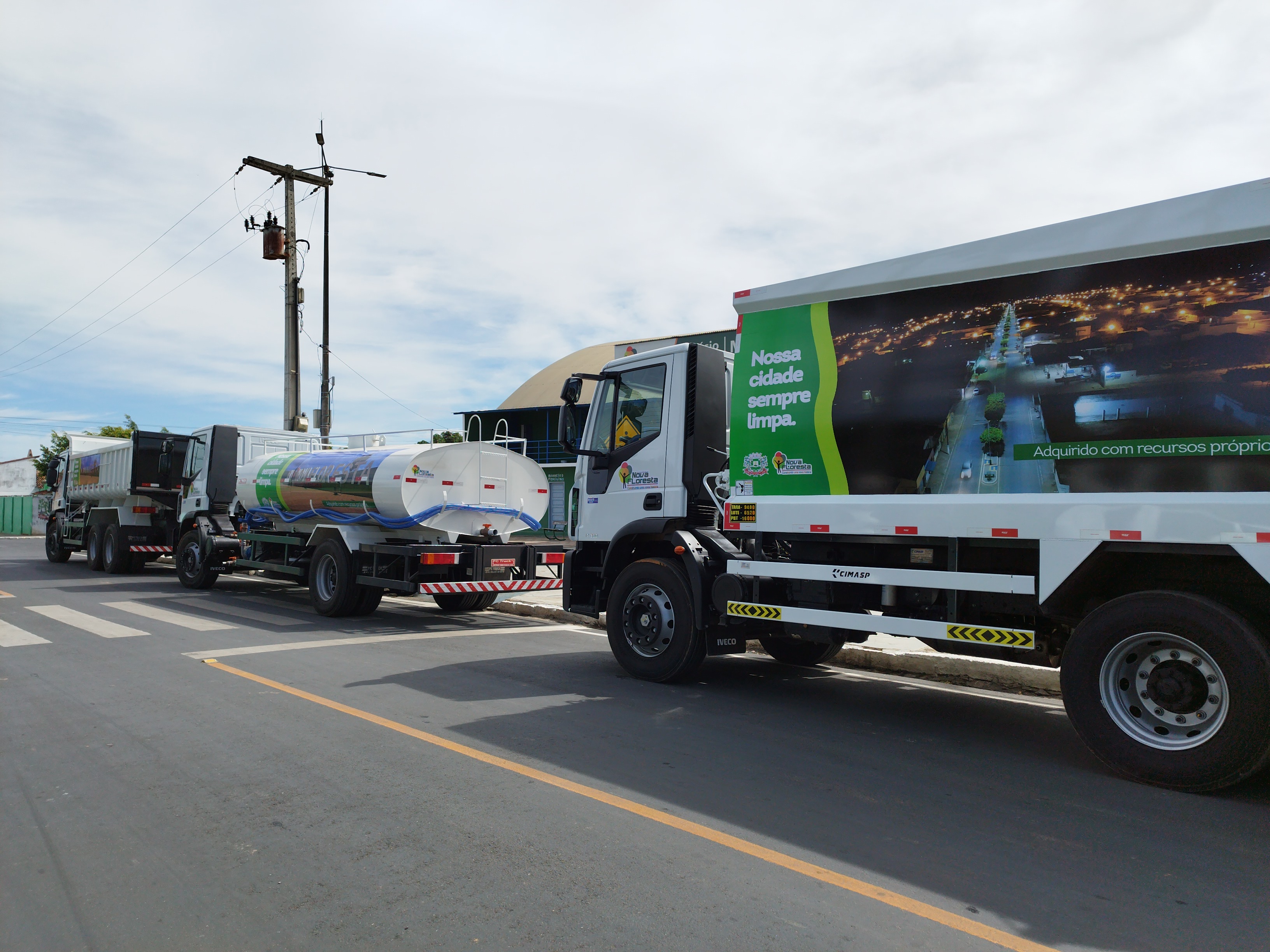A Prefeitura de Nova Floresta realizou a aquisição de mais três veículos novos para a frota do município, sendo eles um caminhão compactador de lixo e um caminhão caçamba para melhorar a eficiência na coleta do lixo, e um caminhão-pipa para melhor atender as demandas de abastecimento no município, todos adquiridos com recursos próprios.
