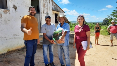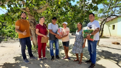 Estiveram presentes na entrega o prefeito Jarson Santos, o secretário de Agricultura Iran Santos e o secretária de Assistência Social Isabel Alves. A distribuição dos alimentos visa beneficiar principalmente a comunidade rural com segurança alimentar e qualidade de vida.