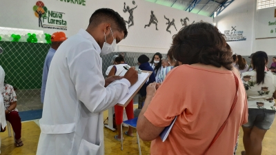 Na ação, foram ofertados diversos serviços em saúde, tais como aferição de pressão arterial, registro de peso e altura, aferição de glicose, solicitação de exame de hemoglobina glicada, vacina contra a covid-19 e entrega da caderneta do idoso.