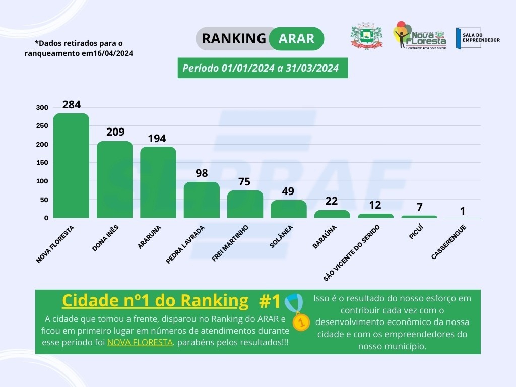 Fomos destaque, conforme ranking divulgado pelo Sebrae, em número de atendimentos. De acordo com os dados levantados ficamos na primeira colocação entre os municípios do Curimataú e Seridó paraibano com o maior número de atendimentos realizados pela Sala do Empreendedor!