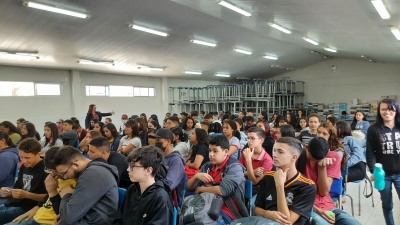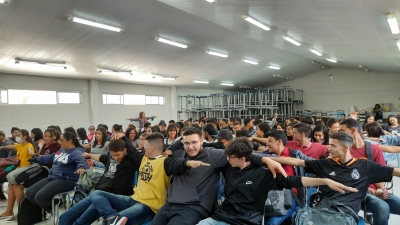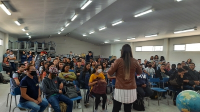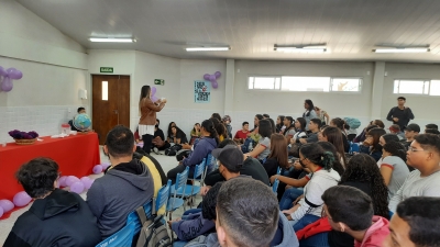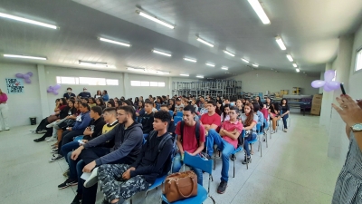 Isabel, que também é psicóloga clínica especialista em perfil comportamental, palestrou com o objetivo de mostrar aos alunos os indicativos de um relacionamento agressivo e conscientiza-los sobre o enfrentamento desse tipo de violência.