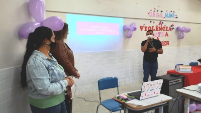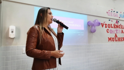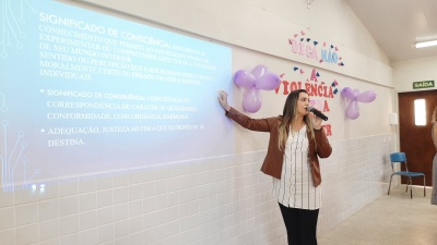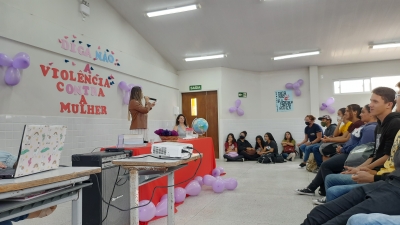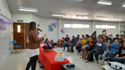 Na manhã da última quinta-feira (25), a secretária de Assistência Social, Isabel Alves, representando a Prefeitura de Nova Floresta, realizou uma palestra no auditório da Escola Cidadã Integral Técnica José Rolderick de Oliveira, com o tema "Consciência e congruência social", em alusão ao agosto lilás, mês de combate a violência contra a mulher.