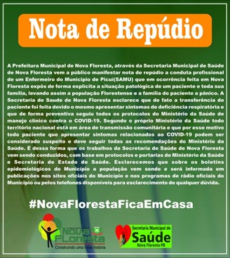 Secretaria Municipal de Saúde de Nova Floresta vem a público manifestar nota de
