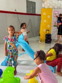 No CRAS, os pequenos se divertiram na III Brinquedoteca do Criança Feliz, proporcionando momentos de interação e estímulo ao desenvolvimento.